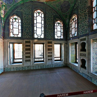Harem Department - III. Ahmet Special Room; The Imperial Harem, private living quarters of the Sultan and his family, is located towards the Golden Horn. This was a forbidden section of the palace, consisting of several structures and quarters, resided by sultans, queen mothers, sultan's consorts, first wife, favourites, princes, concubines and Black Eunuchs guarding the Harem. Different rooms built by sultans living here from the 16th century to mid-19th century reflect the development of Turkish court architecture and decoration. Every functional and hierarchical group in the Harem had their own rooms around a courtyard. Those rooms were the apartments of Black Eunuchs, Concubines, Queen Mother, Consorts, Princes and the Sultan.
